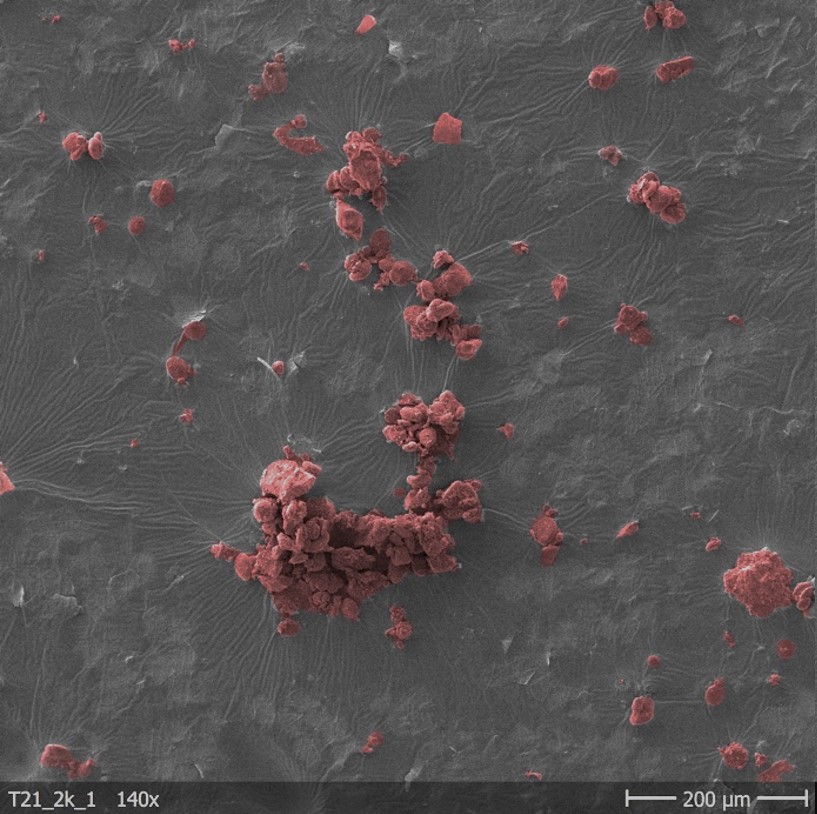 Ein ethisch unbedenklicher Prüfstaub, ohne Schwermetalle, mit Partikelgrößen zwischen 50 nm und 50 µm, der den natürlich vorkommenden Umwelt- und Straßenstaub simuliert, wird unter reproduzierbaren Bedingungen auf die Haut- oder Haaroberfläche aufgebracht. Mit Hilfe der Rasterelektronenmikroskopie (REM) werden Feinstaubpartikel bis zu einem Partikeldurchmesser von 100 nm auf den Haut- und Haaroberflächen abgebildet und anschließend quantifiziert. Somit können Proben nach der Applikation des Feinstaubes und z.B. nach der Anwendung eines Reinigungsproduktes genommen und analysiert werden.